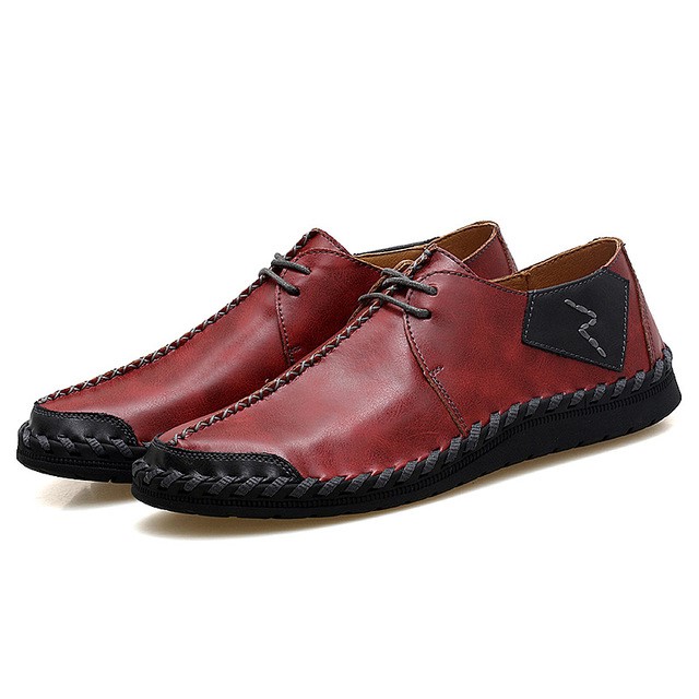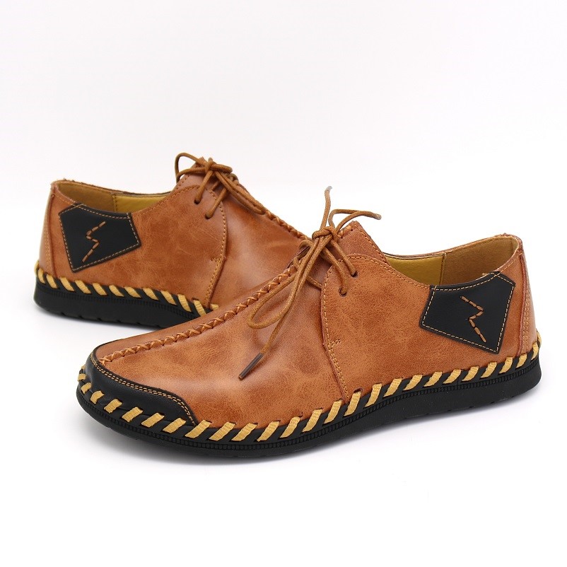 Breathable Leather Lace Up Moccasins Flats Mens Casual Shoes