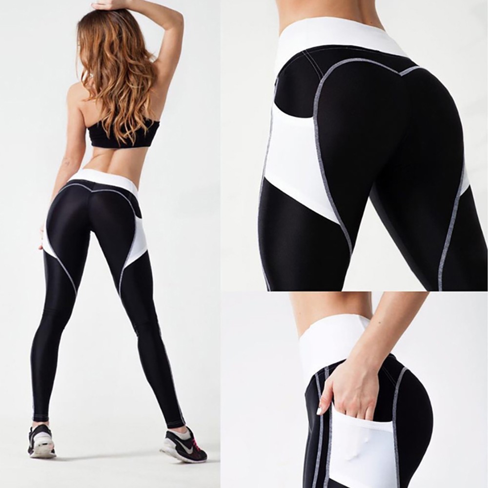 Women High Waist Elastic Fitness Patchwork Skinny Leggings