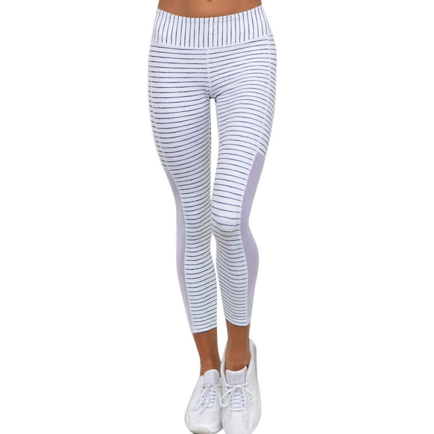 Women Elastic Mid Waist Legging Striped Fitness Active Pencil Bottom