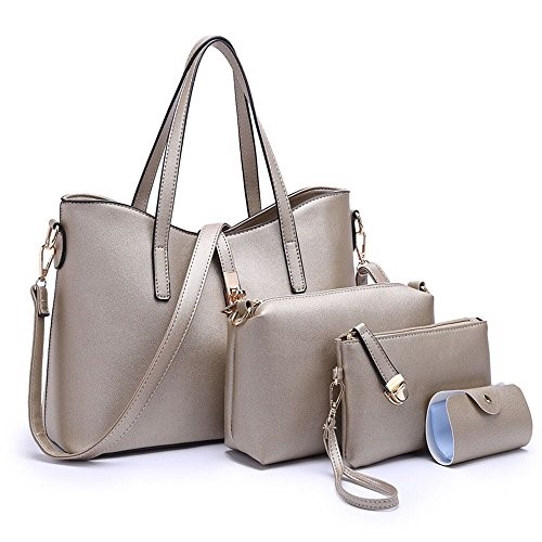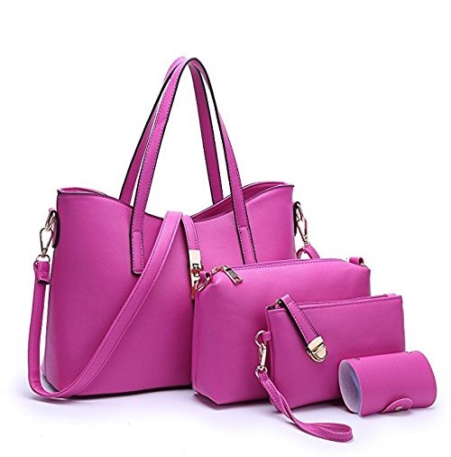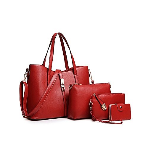 Women Fashion PU Leather Handbag+Shoulder Bag+Purse+Card Holder 4pcs Set Tote Handbag