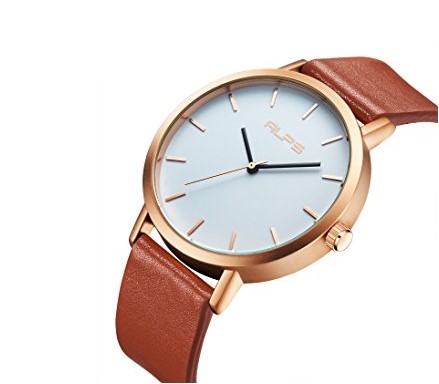Womens Simple Casual Leather Waterproof Analog Quartz Dress Wrist Watch Brown Band