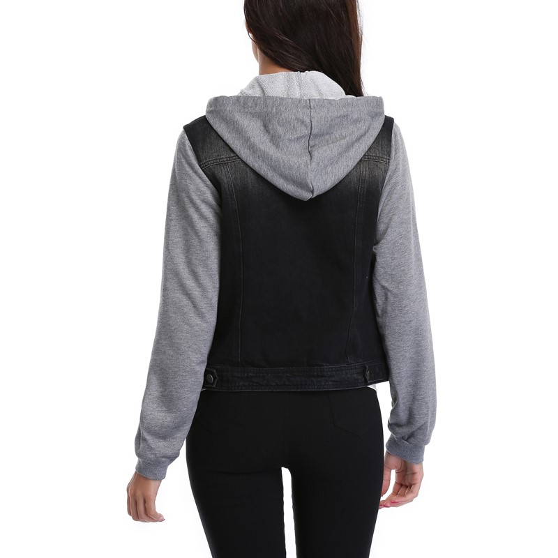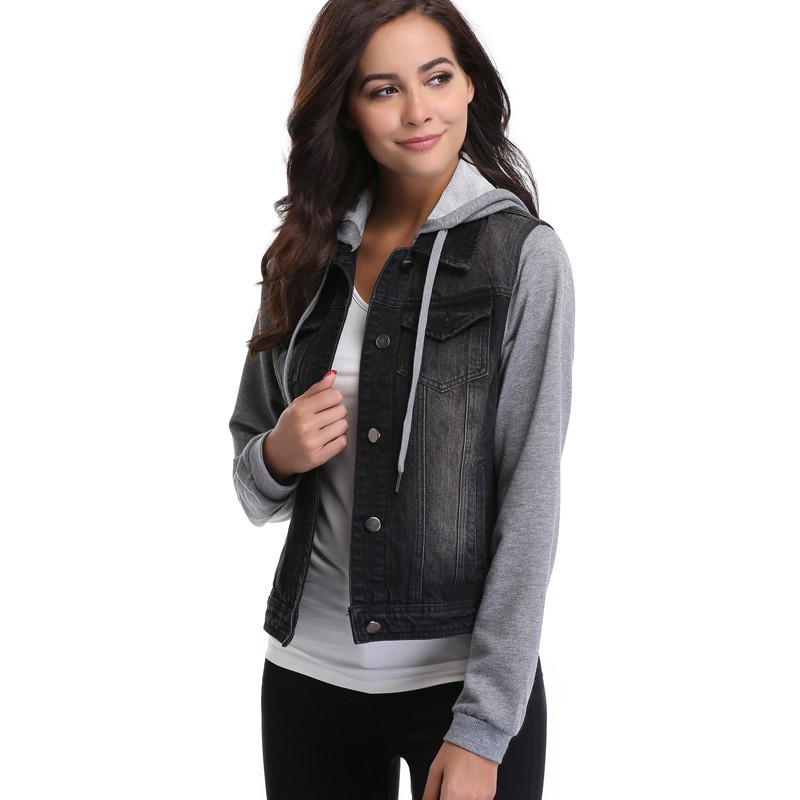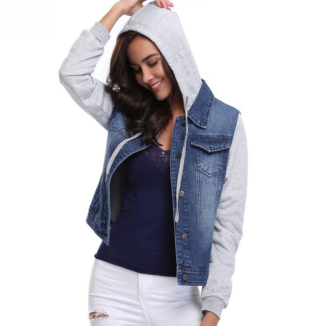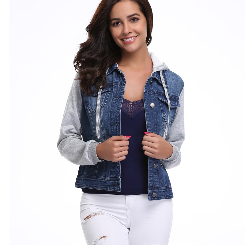 Women Loose Casual Jeans Hooded Jacket Denim Coat