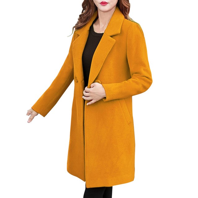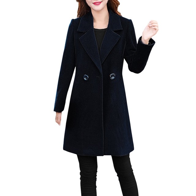 Ladies Fashion Elegant Warm Woolen Solid Plus Size Slim Coat