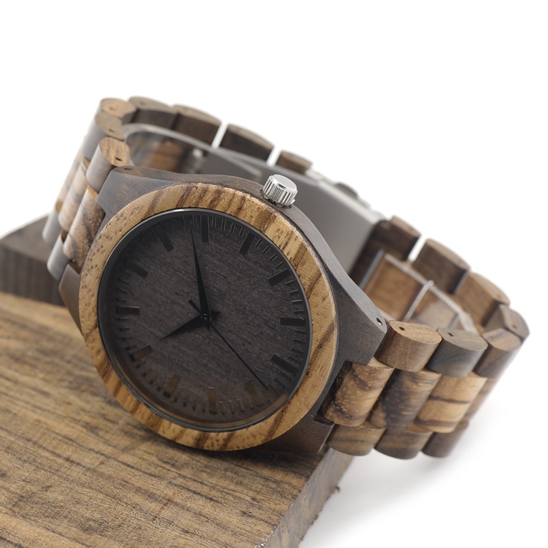 Men Round Vintage Zebra Wood Strap Ebony Bamboo Wood Face