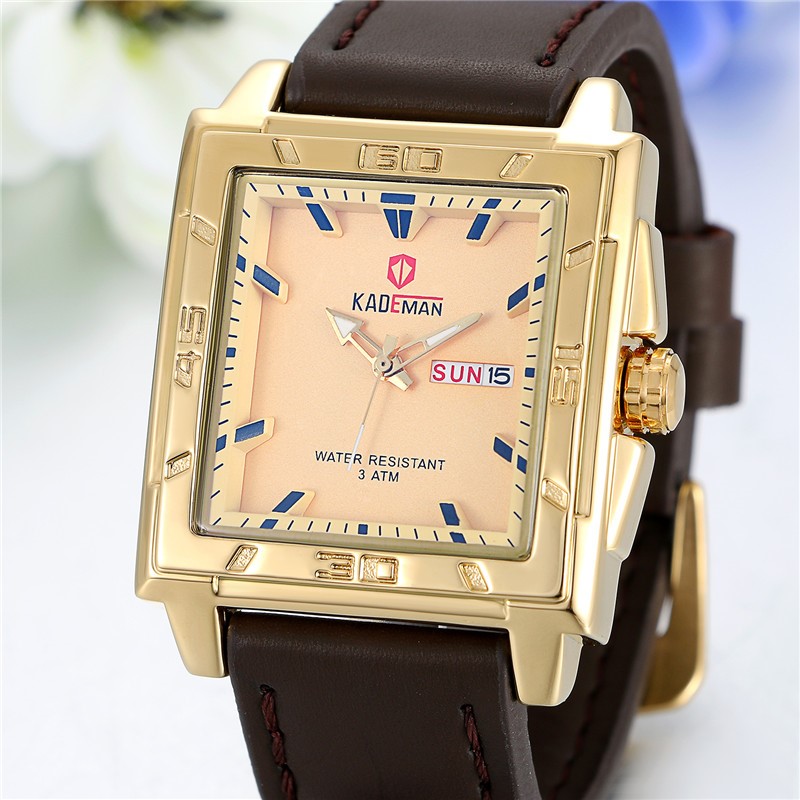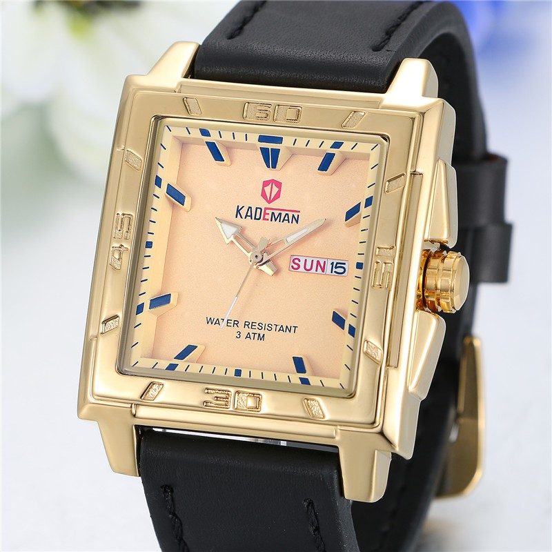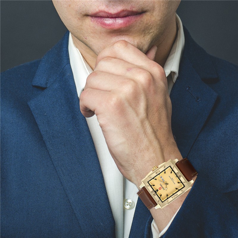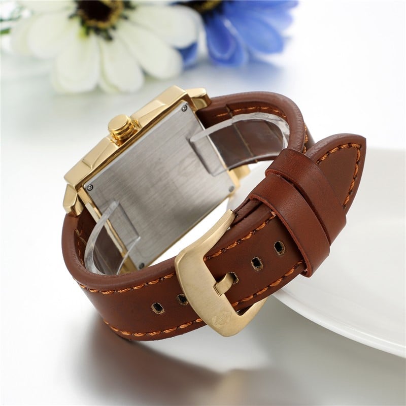 Mens Fashion Gold Square Business Quartz Watch