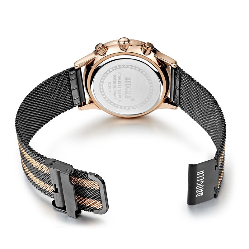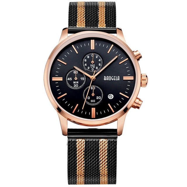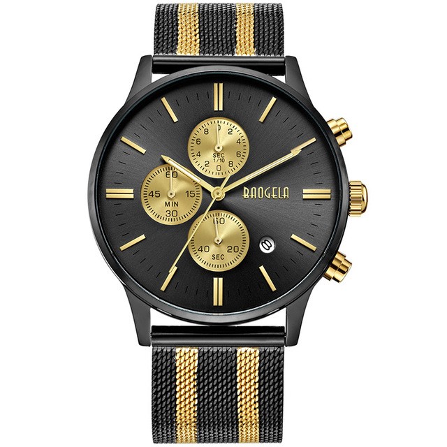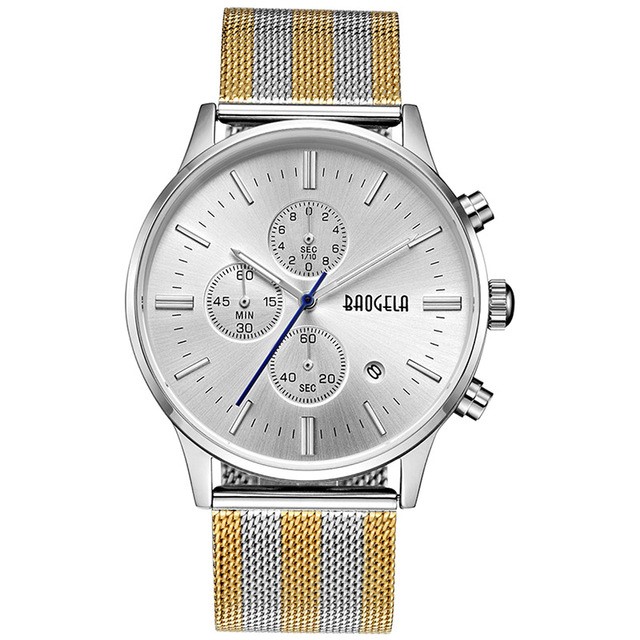 Mens Chronograph Stainless Steel Mesh Band Gold Slim Multi-Function Sports Quartz Watch