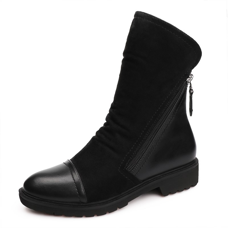 Women Faux Suede Leather Flat Mid-Calf Boot