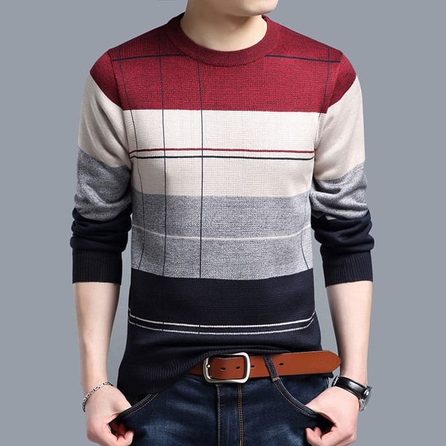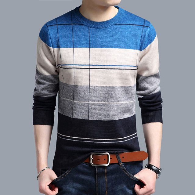 Mens Social Cotton Thin Casual Crocheted Striped Knitted Sweater