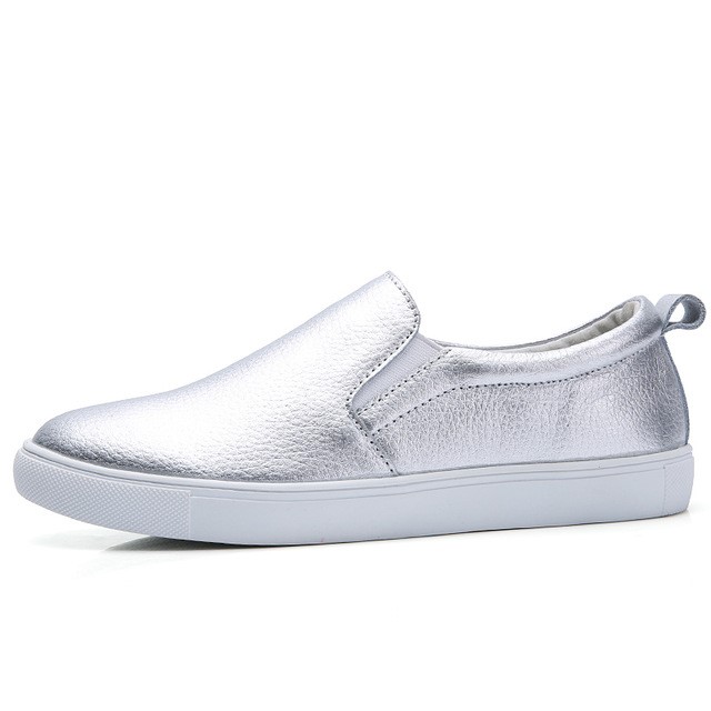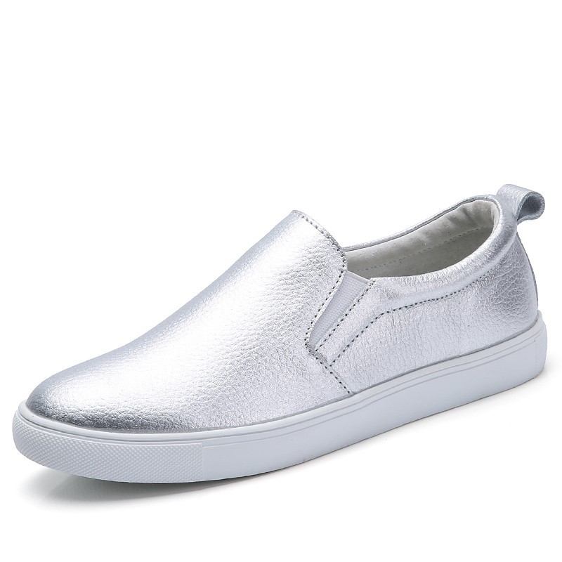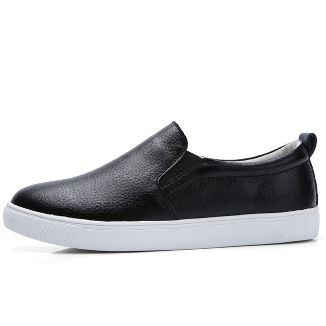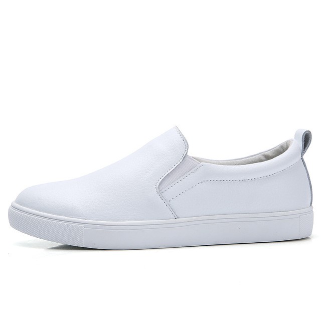 Women Leather Loafers Round Toe Slip On Comfortable Flat Shoes