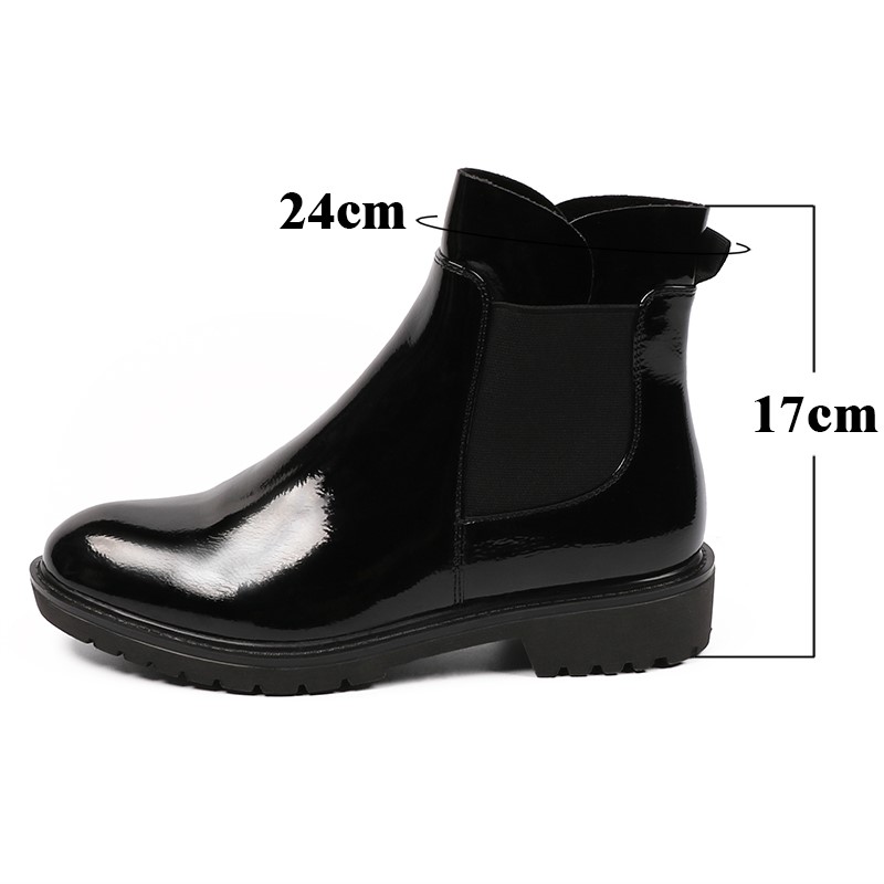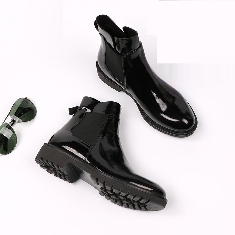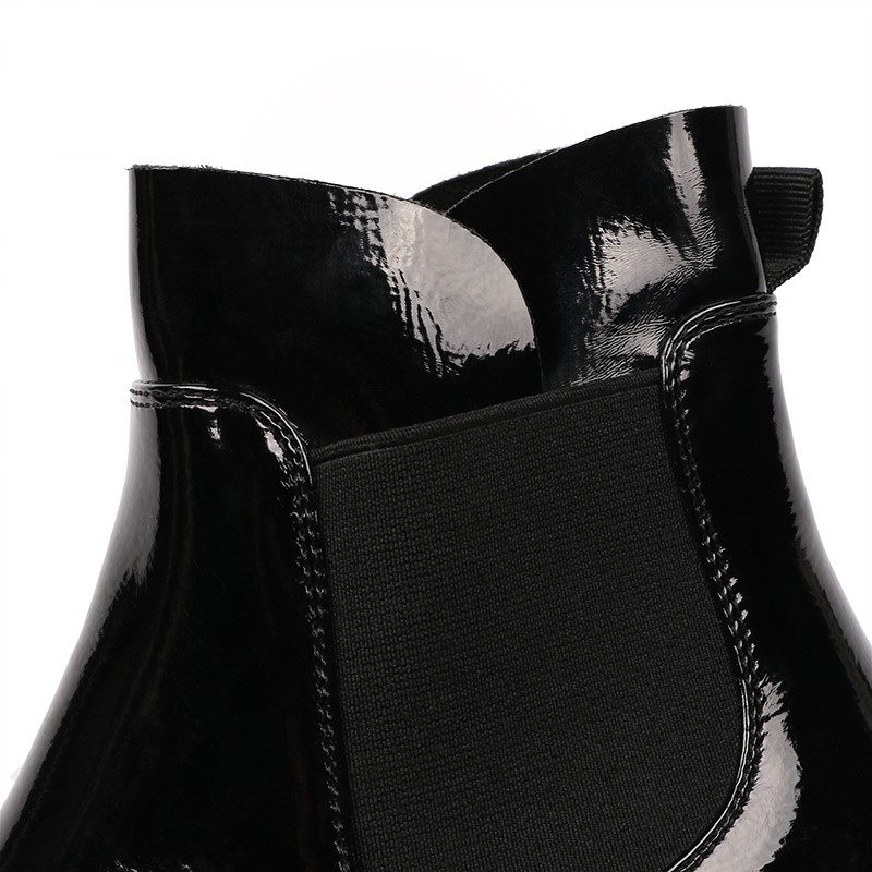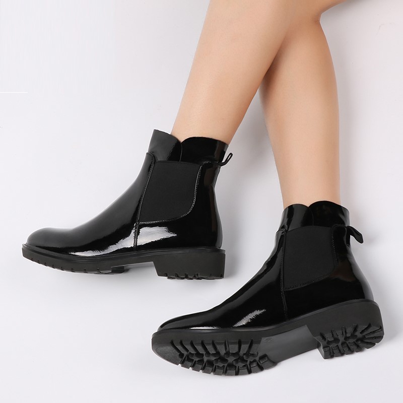 Slip-On Ankle Platform Flat Black Leather Boots For Women