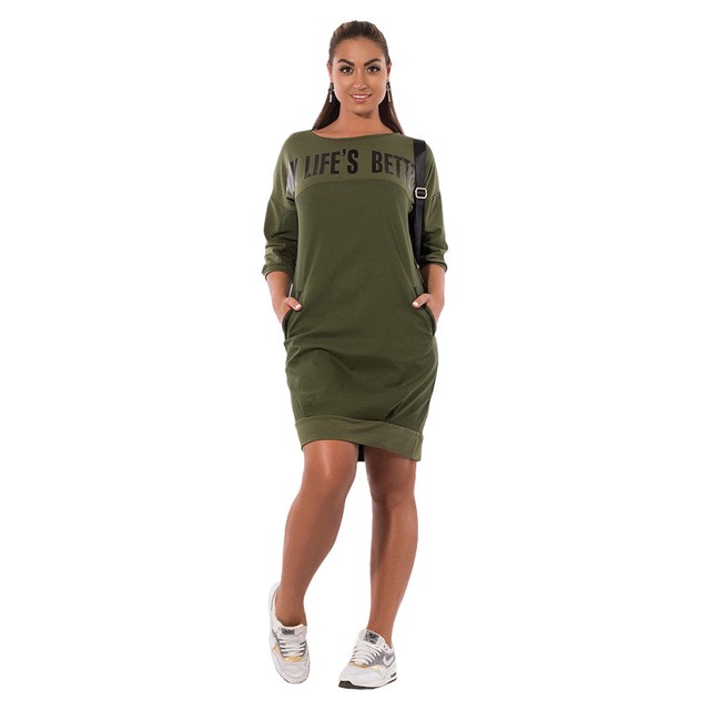 Letter Print Large Size Warm Dress